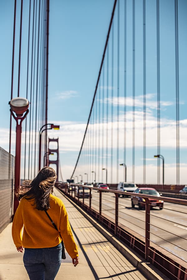 While you can start from the San Francisco side of the bridge, I suggest taking an Uber to the Sausalito side then walking towards the city so you can take in the beautiful skyline views.