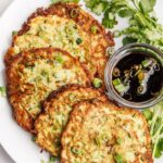 These light and flavorful scallion pancakes are made with zucchini and served with a sweet and tangy Asian inspired dipping sauce.