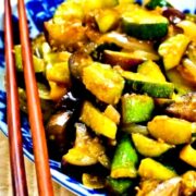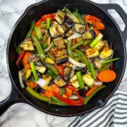 Eggplant stir-fry is a delicious stir-fry made with eggplants, vegetables and drenched in the umami flavors of tamari.