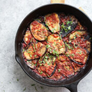 A healthy, fresh spin on the Italian food classic, you’re going to love this hearty and delicious grilled eggplant Parmesan. The ultimate vegetarian comfort food recipe!