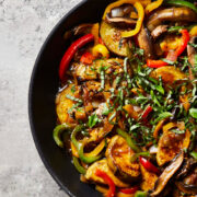 Fresh eggplant, peppers, mushrooms, and onions are drenched in a savory mix of hoisin, soy sauce, and spices. Get the recipe!