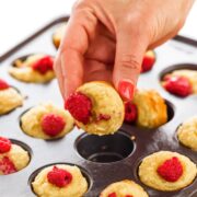 These gluten-free raspberry muffins are light, nutty and super moist. Naturally low carb and high in protein, these muffins are the perfect make-ahead healthy breakfast or snack.