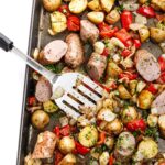 Sheet pan meals are all the rage these days, and for good reason. In fact, we make sheet pan chicken with veggies many nights a week. Who doesn’t love being able to make a healthy and satisfying dinner while dirtying fewer dishes? I know this busy mom does! Not to mention cooking everything on one pan allows for flavors to blend and meld together. To help you stay inspired, I’ve gathered 20 healthy sheet pan dinners that are delicious and easy for you to try. Enjoy!