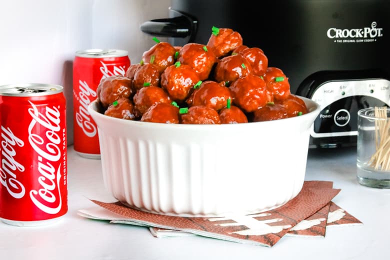 Perfect for game night, the coca cola really caramelizes the meatballs making for a deliciously sweet and tangy appetizer. Spice it up with a little sriracha for a spicy twist.