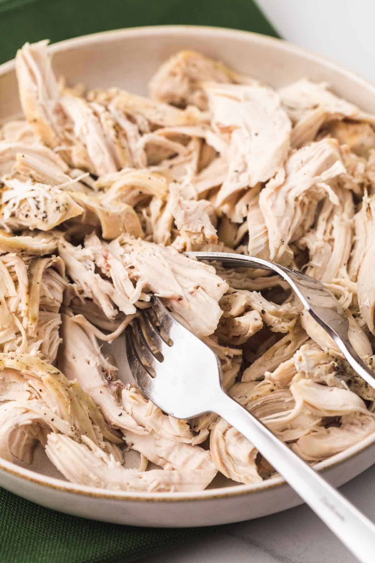 With just boneless chicken breasts, salt and pepper, this chicken is simple and delicious. Use it in a variety of meals including chicken tacos, chicken and noodles, in casseroles, or in any chicken dish.