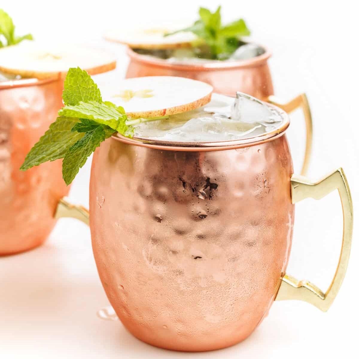 A fun spin on the traditional mule, this Apple Cider Moscow Mule cocktail is made with crisp apple cider, sweet ginger beer, and your choice of gin or vodka.