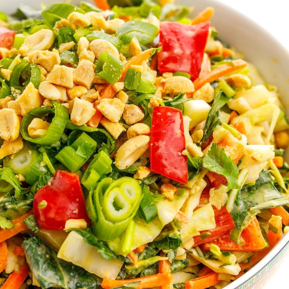 This fresh and flavorful Asian chopped salad is made with crunchy veggies that are tossed in a creamy, gingery peanut dressing.