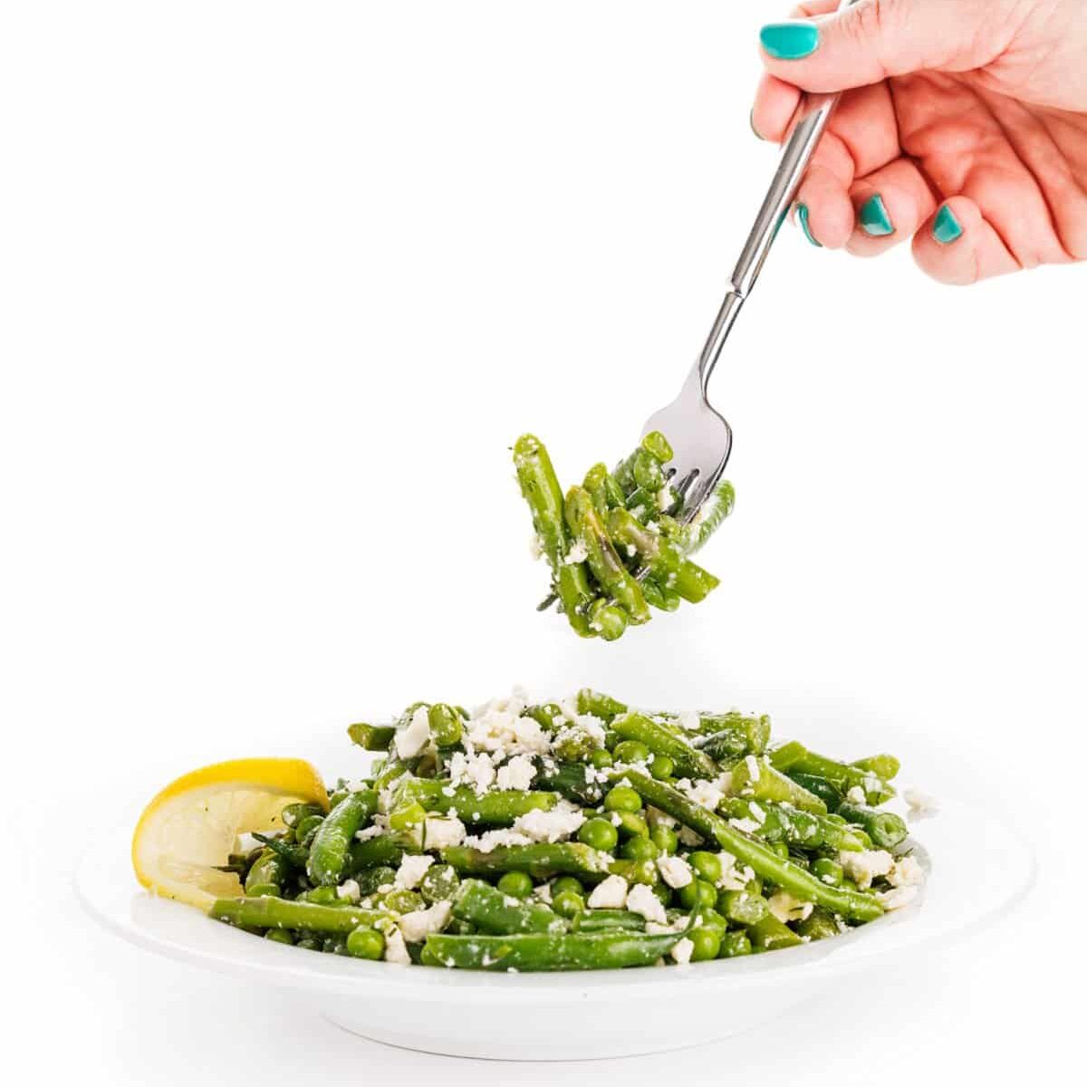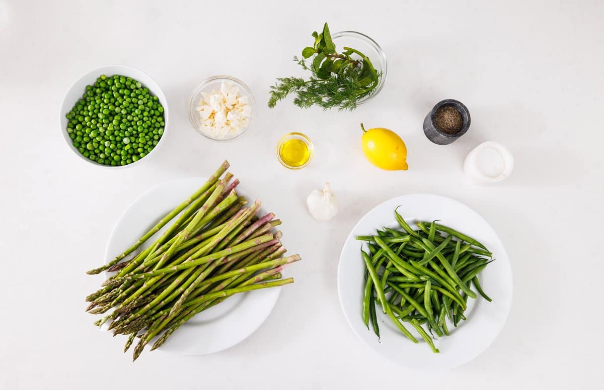 This bright and delicious asparagus salad with green beans, sweet peas and fresh dill is tossed in a lemon garlic vinaigrette. Delicious warm, chilled or room temp, it’s the perfect side dish to serve with fish, chicken or lamb.
