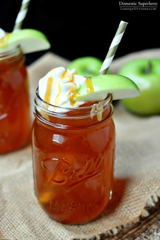Whip up this festive and delicious apple pear punch and get into holiday season mode! Enchant your guest by adding flavor and a lot of interest to this quick punch with just a touch of salted caramel sauce.
