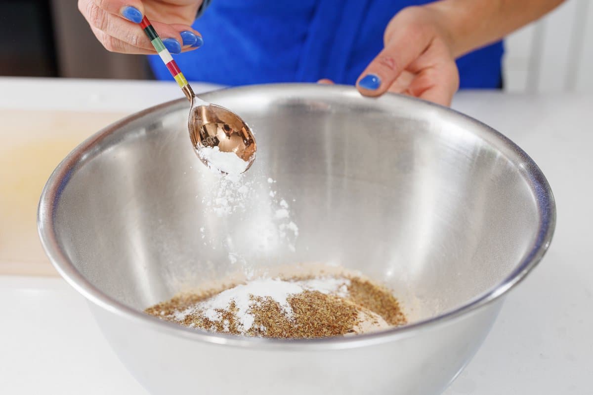 Next add the flax seed meal and cinnamon.