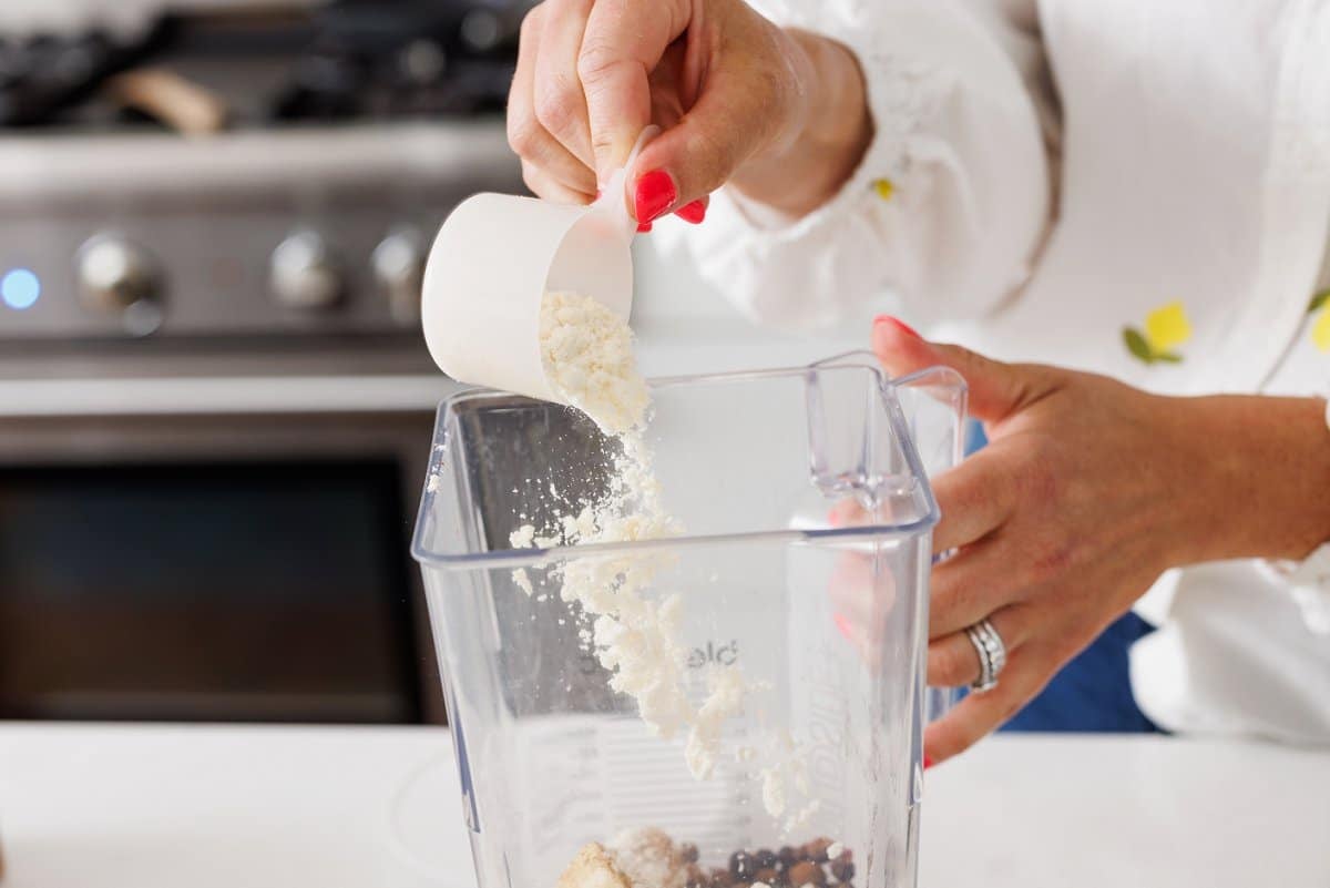 Next add your favorite protein powder.
