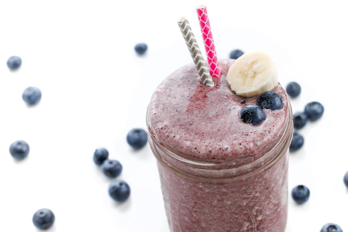 Recipe Index » Smoothies » High Protein Blueberry Kale Power Smoothie