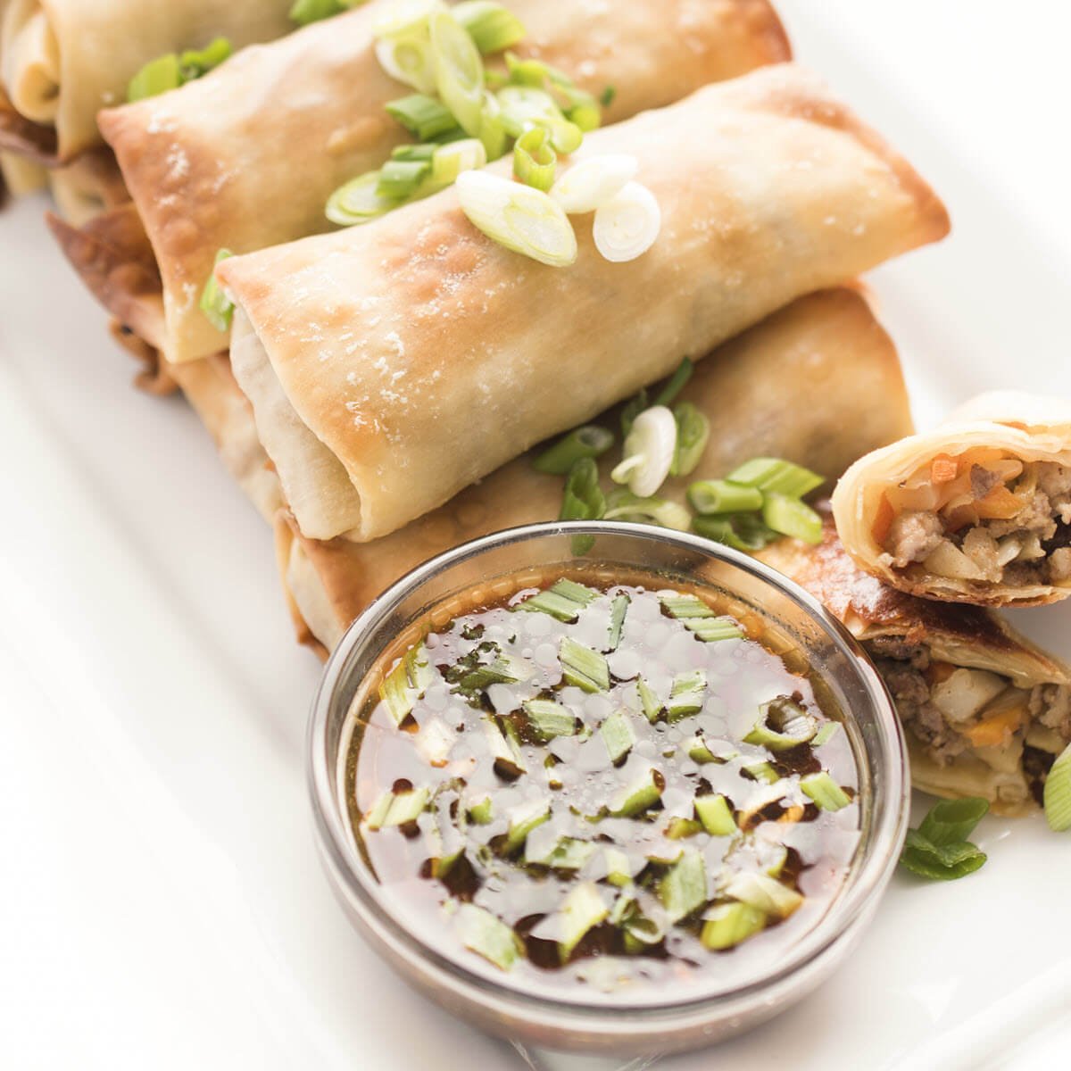 Definitely! Set the air fryer to 400, follow the recipe as instructed, but layer your egg rolls in a single layer in your air fryer basket and cook for about 8 minutes.