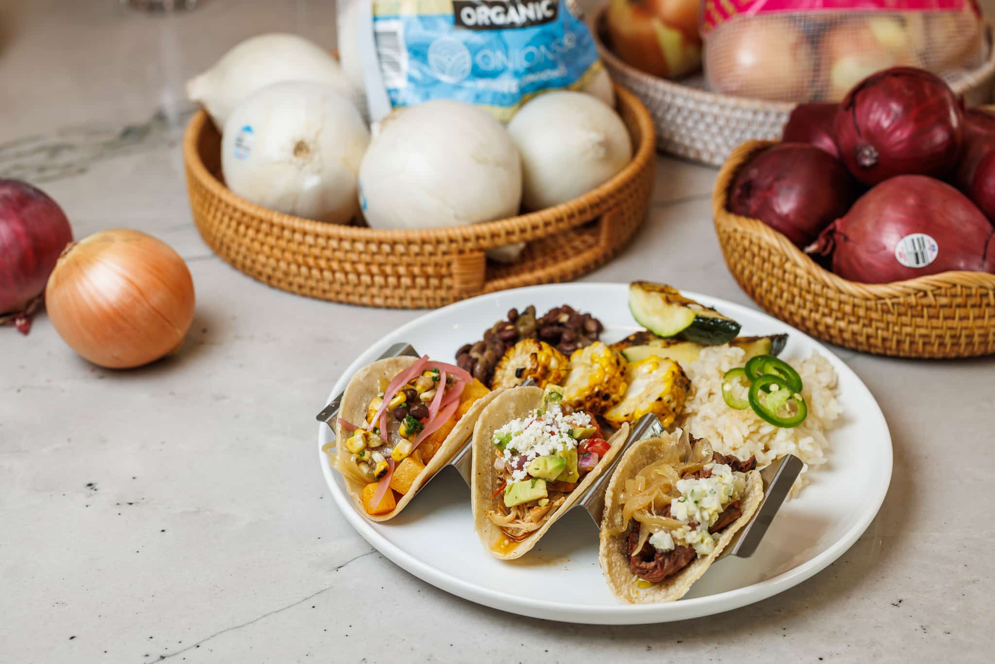 Onions 52 used their signature Tearless Smileys along with red and white onions to make a delicious taco bar for lunch. The knife skills demo helped to whip up some delicious toppings, like fresh salsa and guacamole!