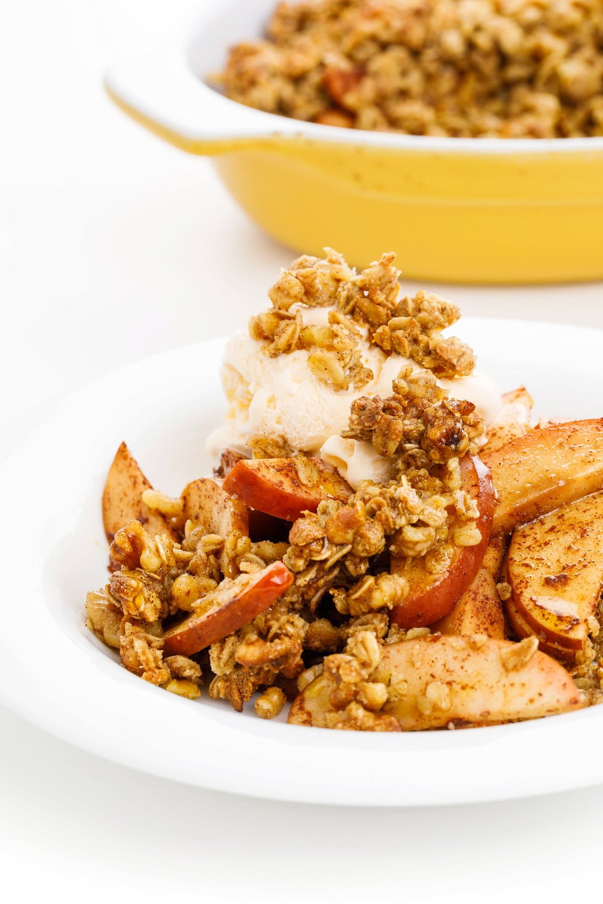 You can enjoy the apple crisp hot, warm or room temperature. However you enjoy it, I highly recommend serving with a scoop of vanilla ice cream.