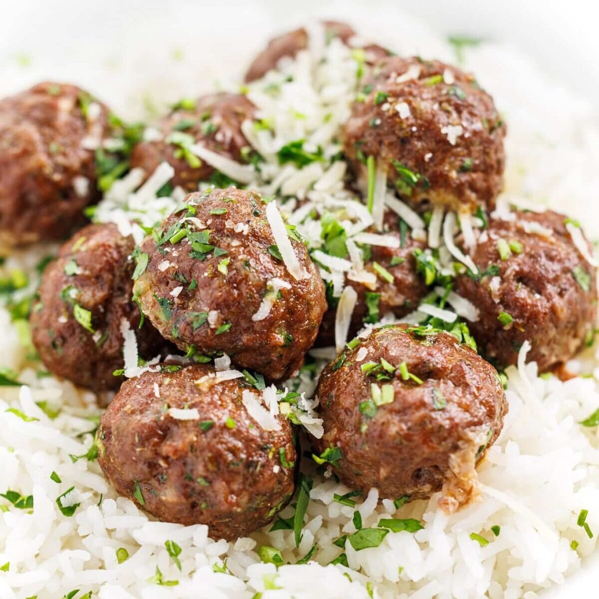- Parmesan cheese: Adds nutty, salty flavor and helps keep the meatballs together- no breadcrumbs needed!