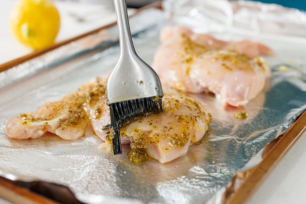 4. Using hands, gently rub the mixture on the chicken breasts.