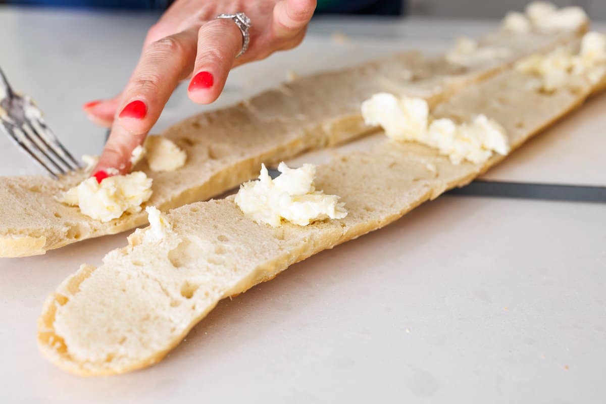 • Butter: Helps the baguette get an even toast while helping to coat the bread in garlic.