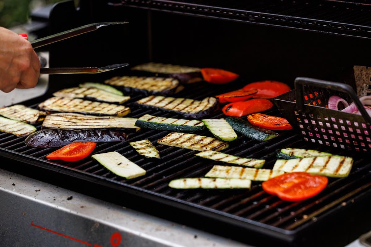 Grilling will usually cook the veggies faster, as well as give you a bit of a smoky taste that you can’t really get from the oven, but roasting or broiling your vegetables is a great alternative if you can’t grill!