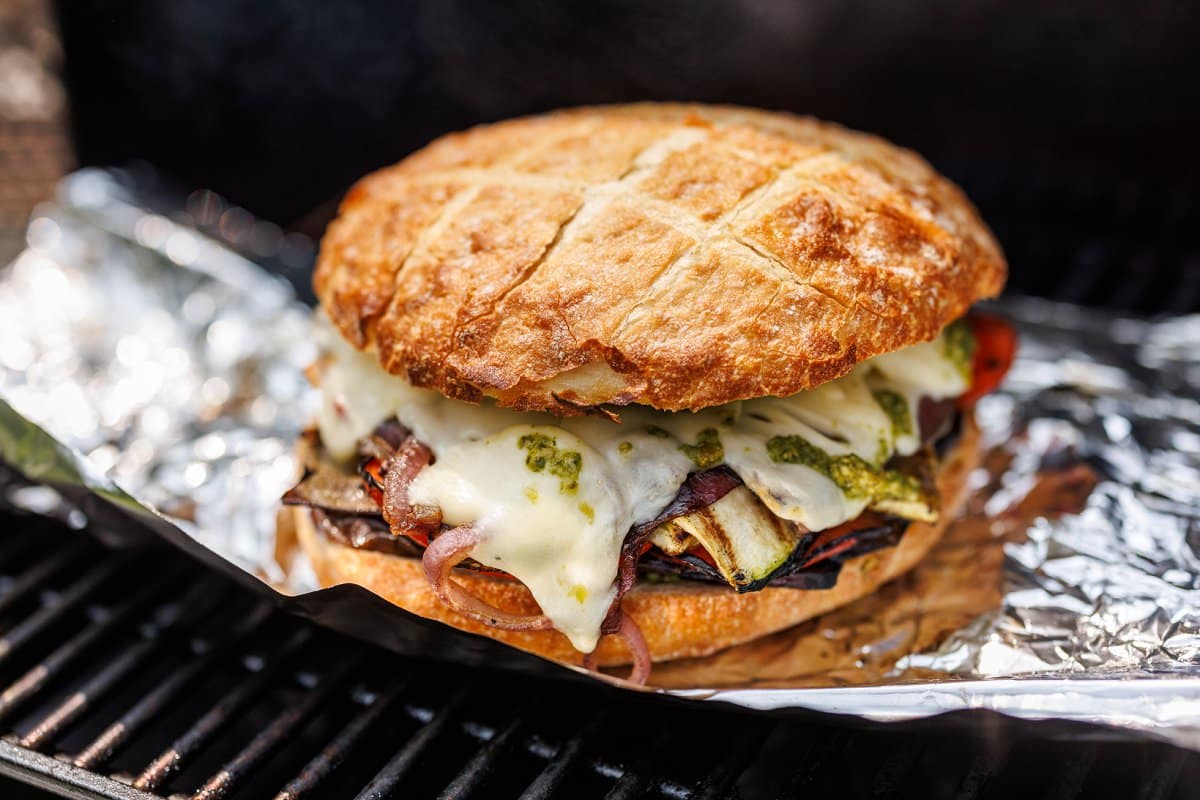 Discover the ultimate grilled vegetable sandwich! This mouthwatering vegetarian recipe combines perfectly charred veggies, creamy mozzarella, and savory pesto, creating an irresistible meatless meal the whole family will love.