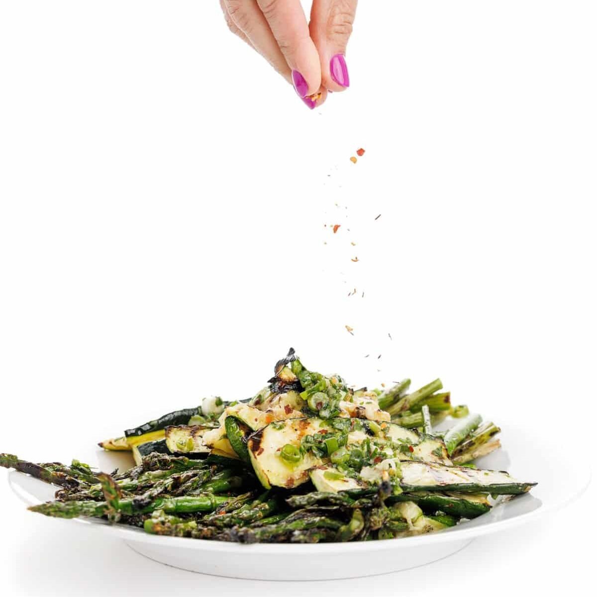 5. When veggies come off the grill, pour vinaigrette on top and serve.