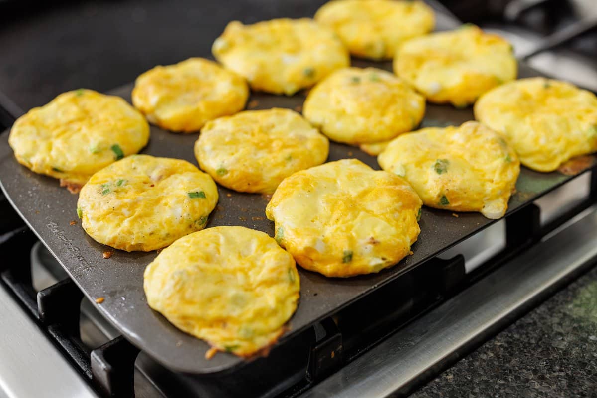 Remove from the oven and let cool before removing from the muffin pan. Then store for easy breakfasts later, or garnish with additional scallions to enjoy right away!