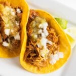 The perfect use for 5-Ingredient Salsa Verde, these pulled chicken tacos are full of bright, fresh flavors.