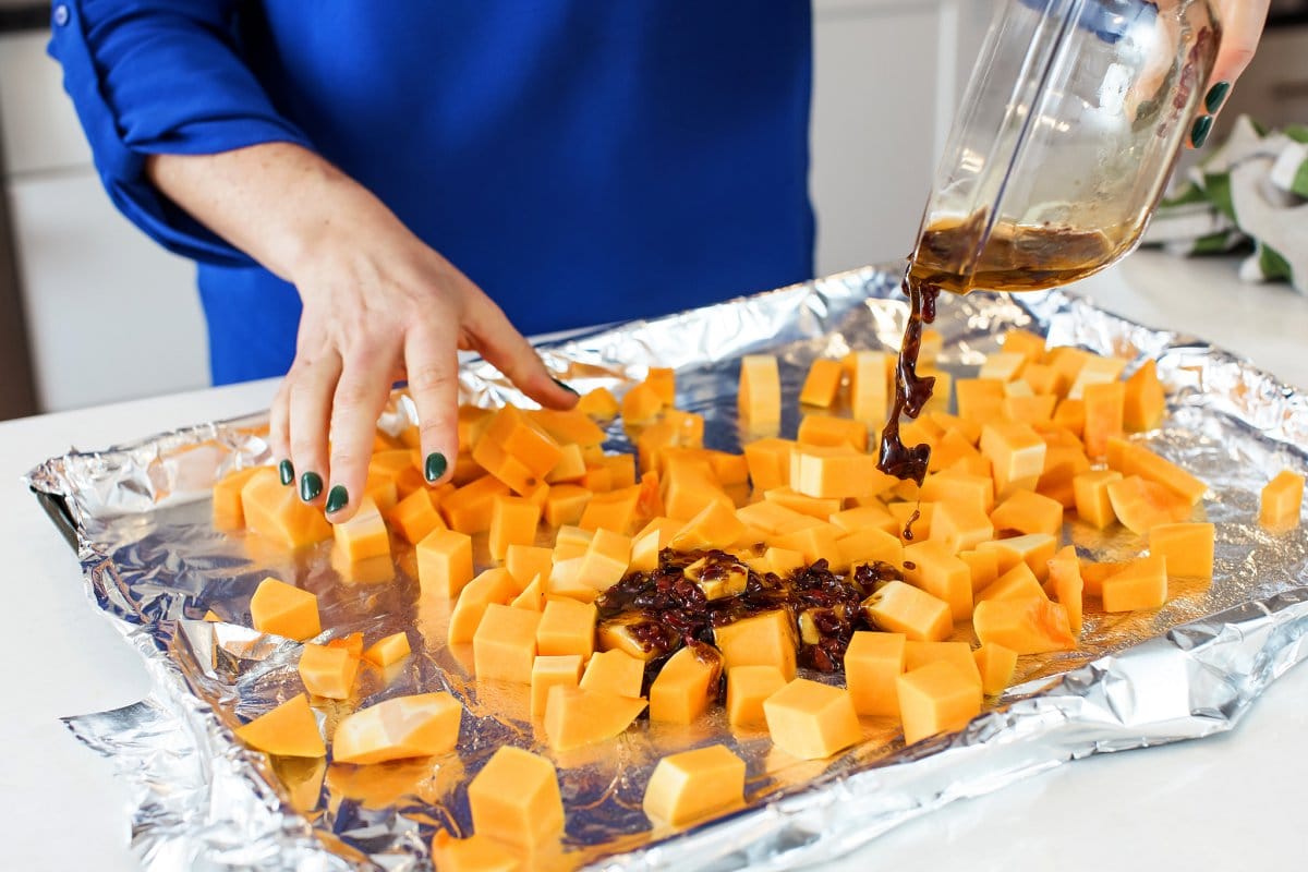 In this recipe, however, cubed squash get tossed with a honey, balsamic and chipotle sauce that caramelizes when roasted at a high temperature, giving the squash texture and flavor.