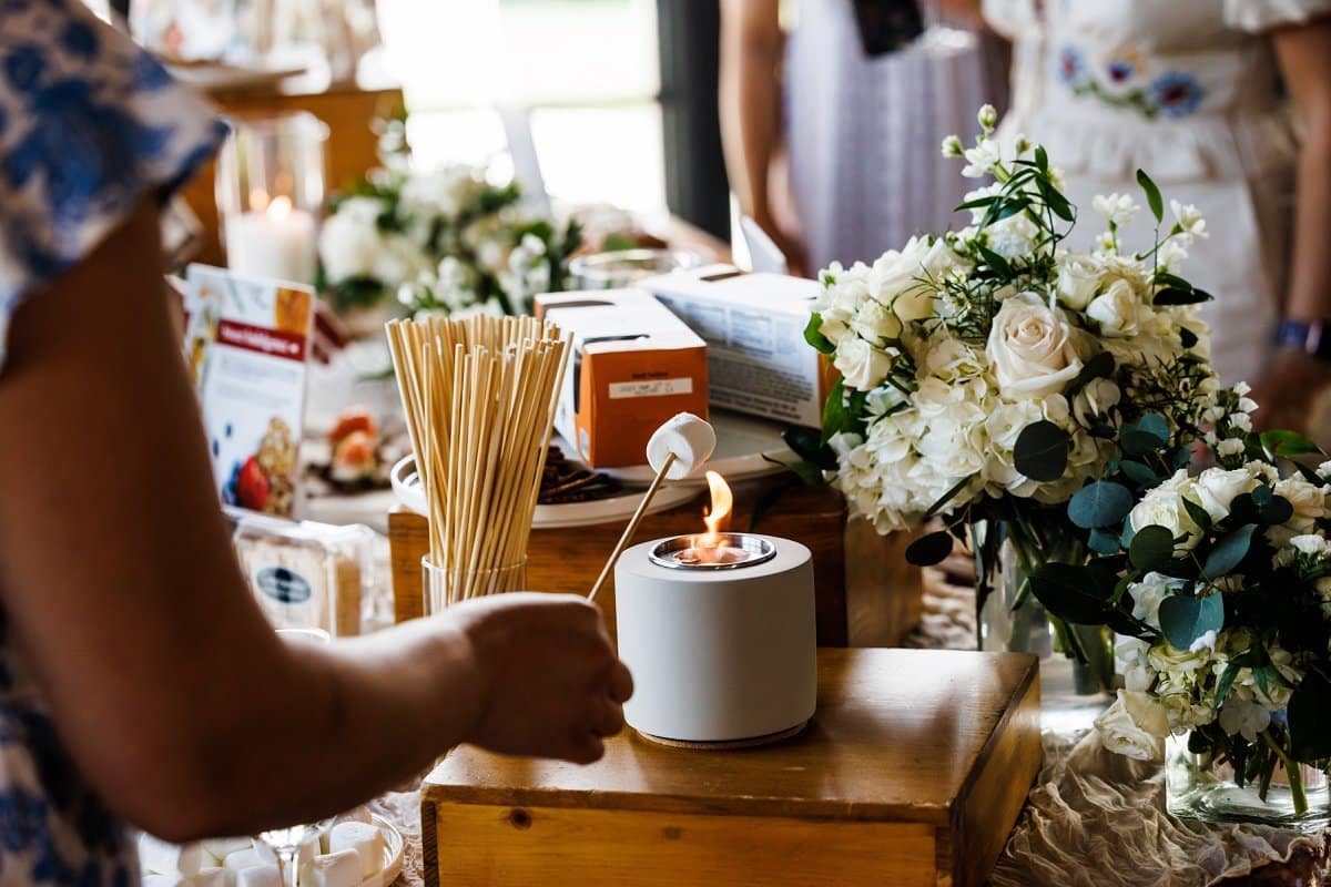 Choosing a solid variety of cheese, meat, crackers, and nuts is a sure-fire way to have a successful, classic charcuterie board. Throw in some dark chocolate or chocolate covered pretzels for a perfect balance of sweet and savory. However, you can also do an exclusively sweet charcuterie board or themed boards. Make a board with different kinds of candy, do a s’mores board with different graham crackers, chocolates, and marshmallows. We took the s’mores idea one step further and used a little tabletop fire to roast our mallows!