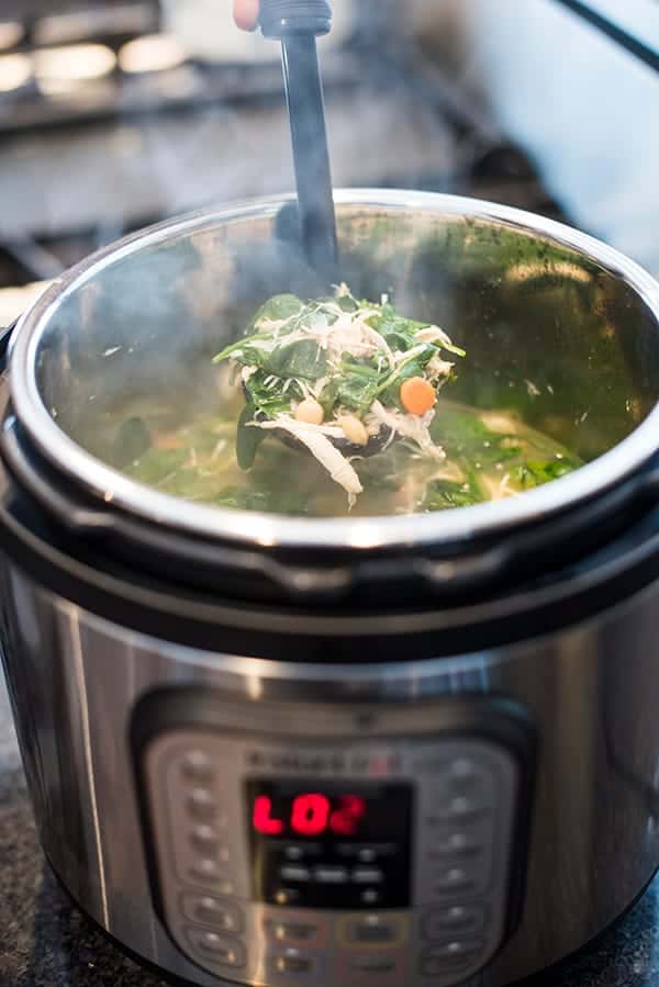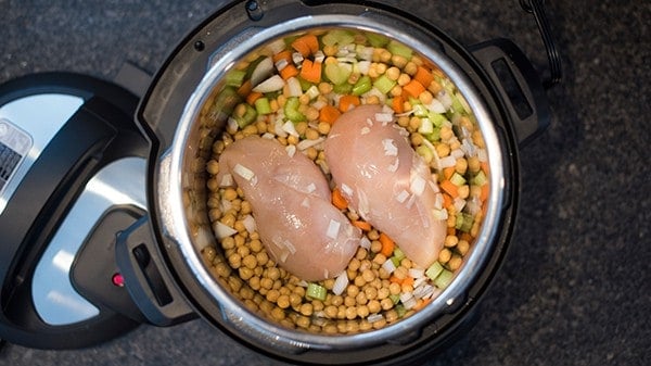 I made this today, followed the recipe exactly, and it did not come out well. I highly suggest you greatly reduce your cooking time. Pressure cooking is stove-top cooking on crack, so if you look at your recipe with that it mind, the cooking time is far too long. It takes 10-15 minutes to poach chicken breasts on the stove-top. Here, they are pressure cooking for thirty minutes (plus the time it takes to pressurize) + sitting in that very hot environment for thirty more minutes. Both breasts shrunk and lost all texture and the vegetables were very mushy. There’s no rice or noodles, only COOKED chickpeas, so why the long cooking time? It would actually be faster and taste better if you made it on the stove-top. Otherwise, I think it should be ten minutes max, and even then maybe use quick release on the pressure. The soup button on the Instant Pot is a lot like the popcorn button on a microwave. You shouldn’t ever use it. The soup is still edible but not good.