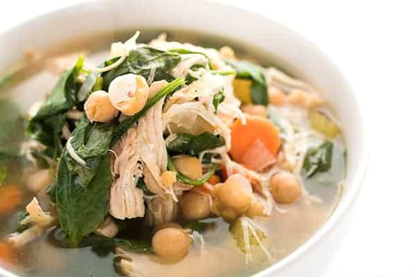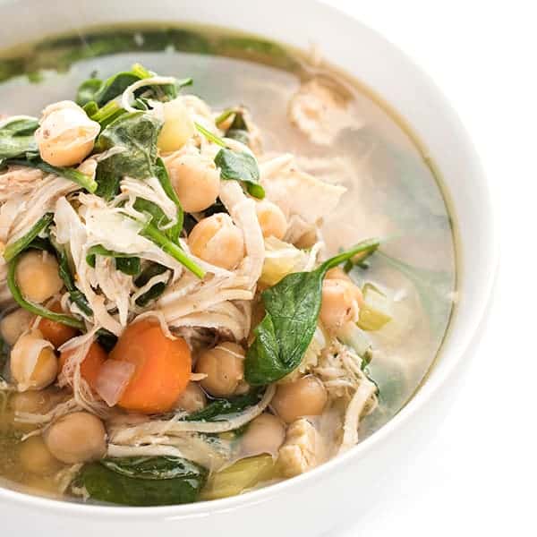 Lebanese chicken soup is ready in no time thanks to the instant pot. Filled with chick peas, lemon juice, cinnamon and spinach, this chicken soup recipe is naturally gluten free.