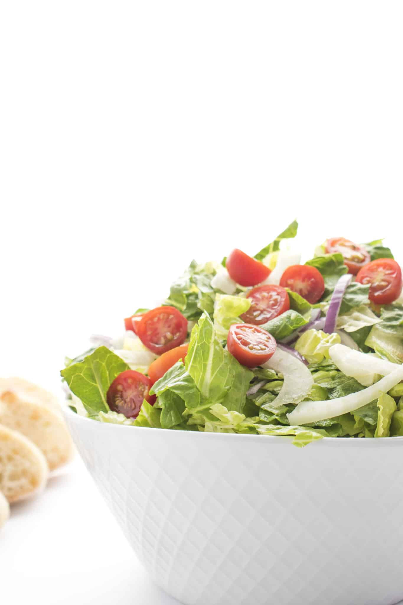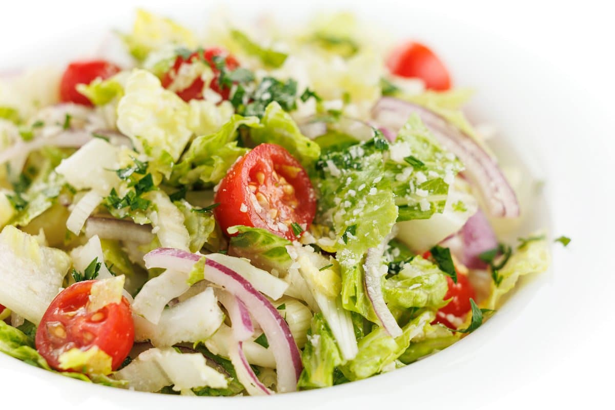 You can’t go wrong with a simple salad as a side for your dinner table. This Italian Garden Salad with Fennel uses simple, accessible ingredients, but if you aren’t familiar with fennel, it adds crunch, texture, and fiber! Slightly sweet like licorice and crunchy like celery, it adds a mild anise flavor that pairs perfectly with the sweet tomatoes and spicy red onions. I love drizzling with a lemony parmesan vinaigrette that can we whipped up quickly, but a store-bought Italian dressing would work well, too!