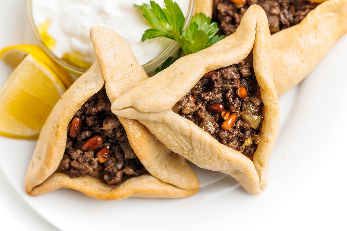 Meat pies are a very popular dish throughout the world. Whether it’s empanadas in Spain, patties in Jamaica, or pasties in Eastern Europe, it seems so many different cultures have their own version of a savory pie. In my family, we grew up eating sfeehas, also called fatayer. It’s a Middle Eastern meat pie that is filled with either meat and pine nuts, spinach, or cheese (such as feta.) Part of the Levantine cuisine, fatayer is eaten in Iraq, Syria, Egypt, Lebanon, Jordan, Palestine, and Israel. My Lebanese Meat Pies are filled with ground beef and pine nuts, and seasoned with warm spices.