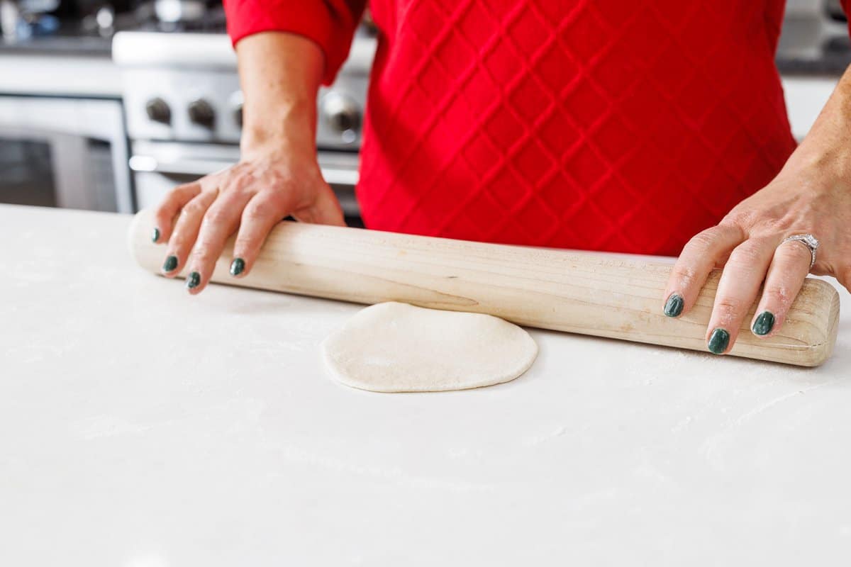 - Divide dough into small balls and roll to 1/8 inch thick. The rounds should be 3-4 inches wide. Let dough rest 20-30 minutes.bread dough
