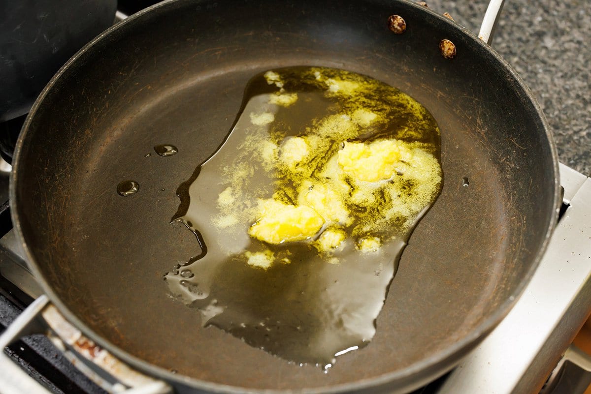 Step 2. Next, melt the clarified butter in a large pan over medium high heat.