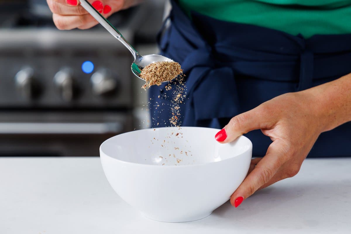 Step 2. Then add the flax seed meal and a pinch of salt.