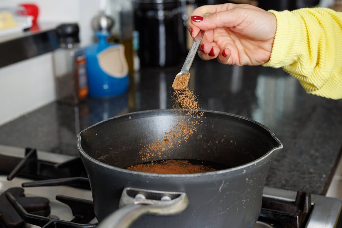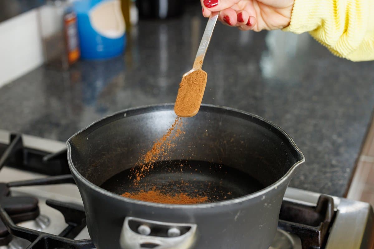 - Bring water and spices (cinnamon through salt) to a boil whisking occasionally.4 cups water, 1 tablespoon cinnamon, 1 teaspoon nutmeg, 1/2 teaspoon ground ginger, 1/4 teaspoon ground cloves, 1/4 teaspoon salt