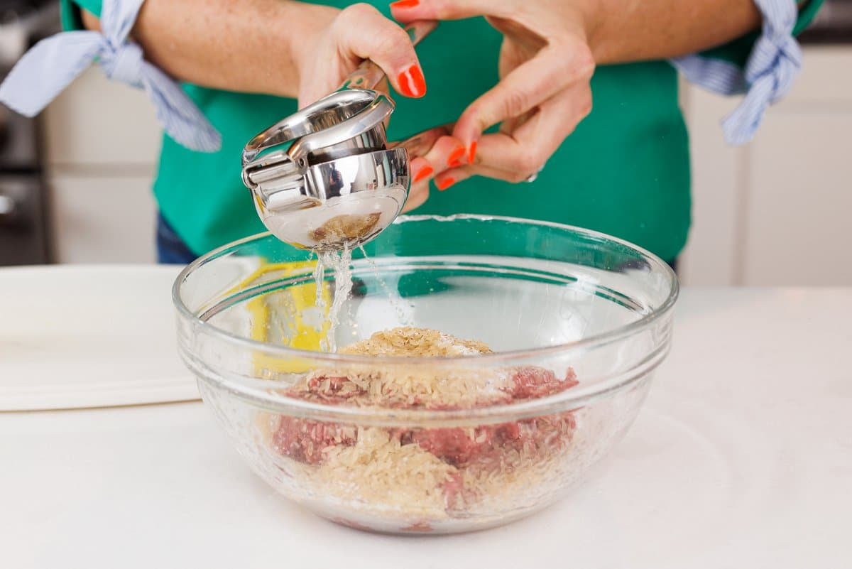 3. In a large bowl, combine ground meat, rice, the juice of 1 lemon, salt and pepper.