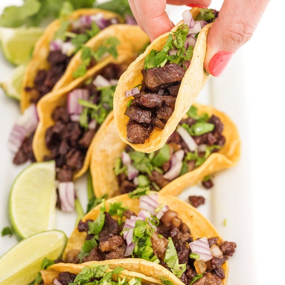 These are the BEST Mexican street tacos you'll ever eat due to one simple reason: the cut of beef. Serve with warmed corn tortillas, cilantro and onion and thank me later.