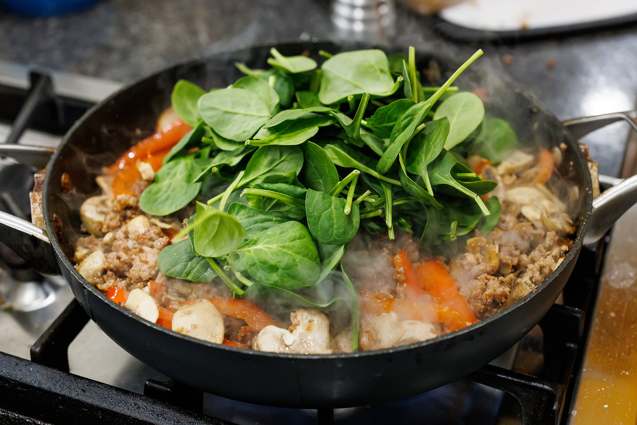 Next add the spinach and sauté for an additional 4-5 minutes.