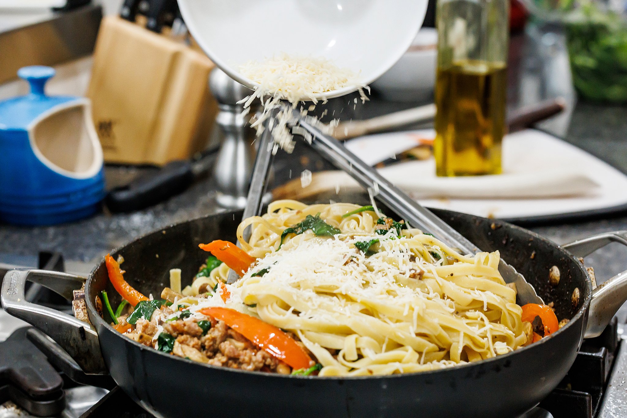 As a working mom to two active, young boys, our days can be pretty hectic. I love a good one-pan or one-pot meal for those crazy weeknights, where we still get a delicious, nutritious dinner, and don’t have to worry about a sink-full of dishes. My One-Pan Italian Sausage Pasta ticks all the boxes – loaded with lean protein, fresh veggies, and plenty of fresh herbs. This dish also makes fabulous leftovers the next day, and may even taste better. Feel free to change up the veggies – let the farmers market and season guide your choice.