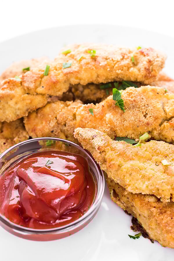Naturally gluten free and paleo, these crispy, oven-baked chicken tenders are made with almond meal. No oil or butter required!