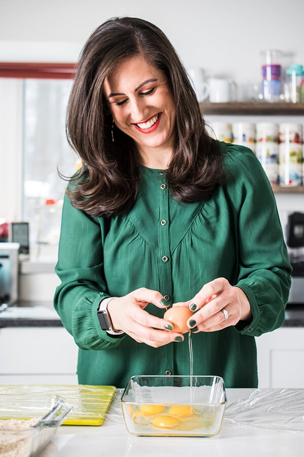 - Crack the eggs into one of the pie dishes and whisk well; set aside. In the second pie dish, add the almond flour, garlic powder, smoked paprika, onion powder, salt and cayenne. Mix well.