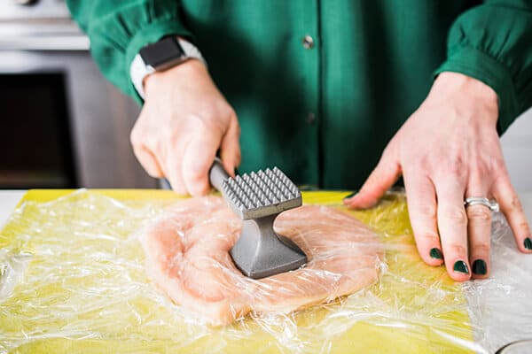 Of course, how you cut the chicken doesn’t matter but if you do keep the breasts whole, I suggest using a meat mallet to pound the chicken thin a bit.