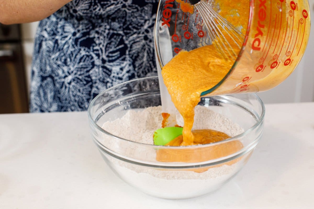 4. Slowly add the dry ingredients to the wet and stir until fully incorporated.