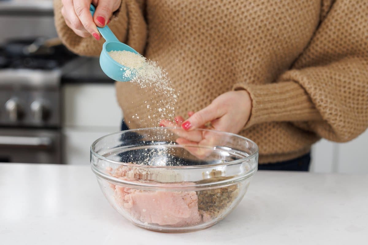 Then sprinkle in your panko bread crumbs and grill seasoning.