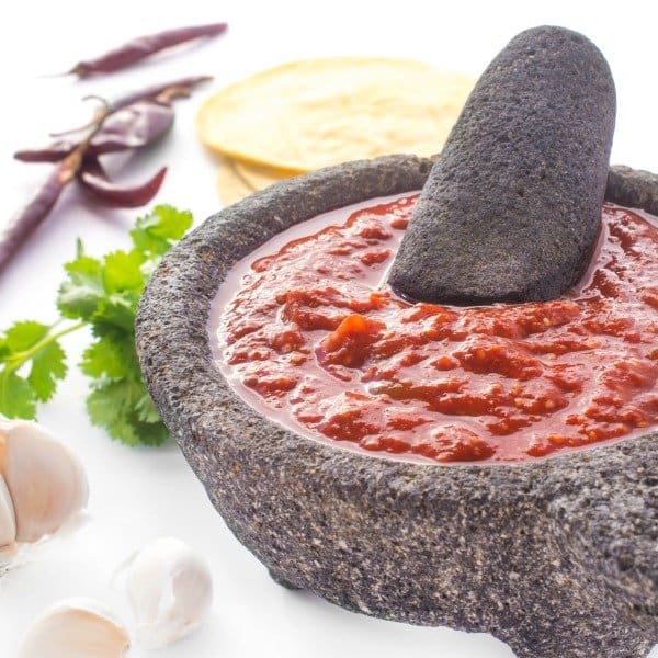 Salsa Roja is a common sauce for tacos, chilaquiles, beans, enchiladas, etc. Essentially, anything you wish to make spicier. Despite the popularity of chips and salsa, Mexicans don’t typically eat salsa with tortilla chips as customary in Mexican restaurants in the US. Who knew, right?