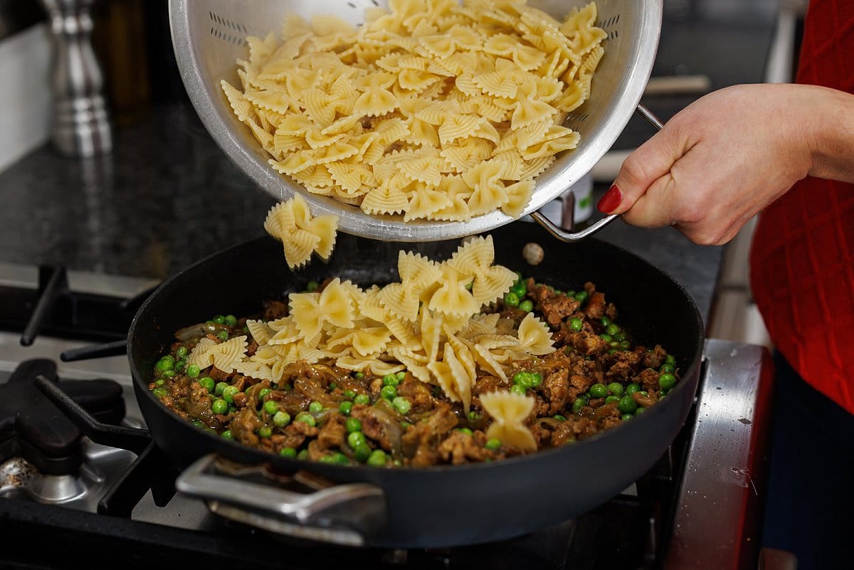 • 8 ounces bowtie pasta (or any short cut pasta of choice) cooked according to package instructions