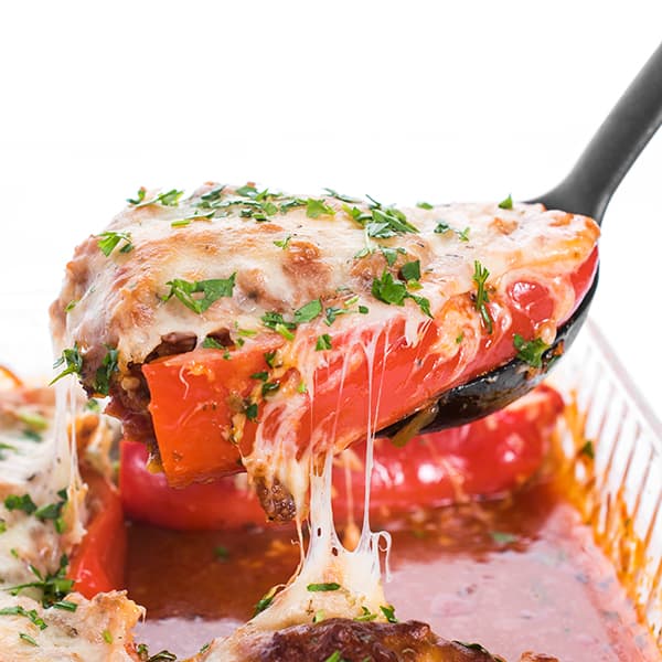 My husband and our youngest are pizza fanatics but my oldest and I could take it or leave it. My solution? These low carb sausage pizza stuffed peppers.