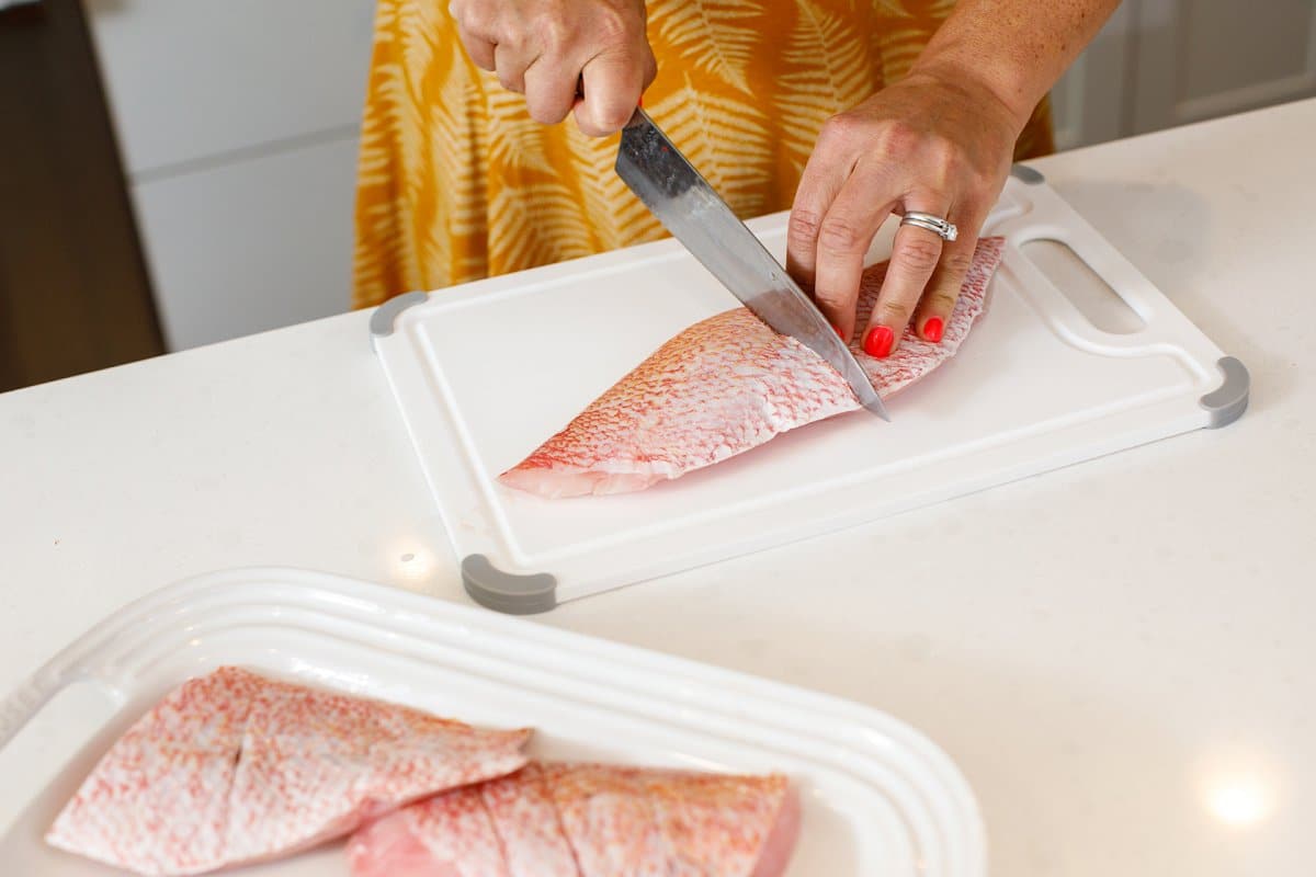 If you can find peeled and deveined shrimp it will save you time! If you can’t, start by lightly cutting along the top of the shrimp down to the tail. Use the knife to remove the vein in the shrimp. Discard the shells and veins. Rinse the shrimp with clean water then pat dry on a paper towel to remove excess moisture.